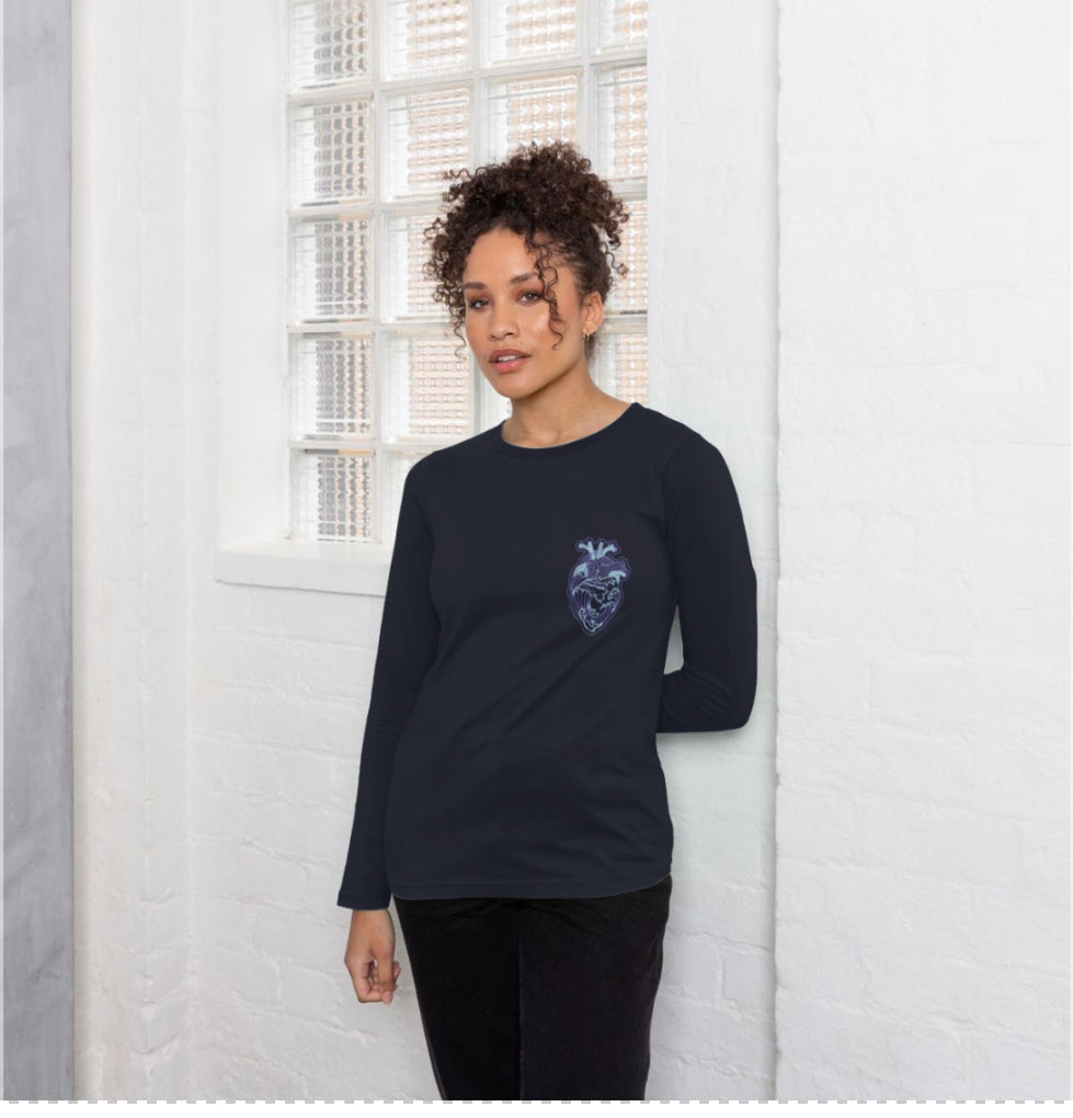 Organic Cotton Long Sleeve T-shirt, 155g/m2. Wash cool, hang dry. GM free. Not tested on animals. Does not contain animal-derived products. Printed with low waste printing tech. Made in a renewable energy powered factory audited for a wide range of social and sustainability criteria.