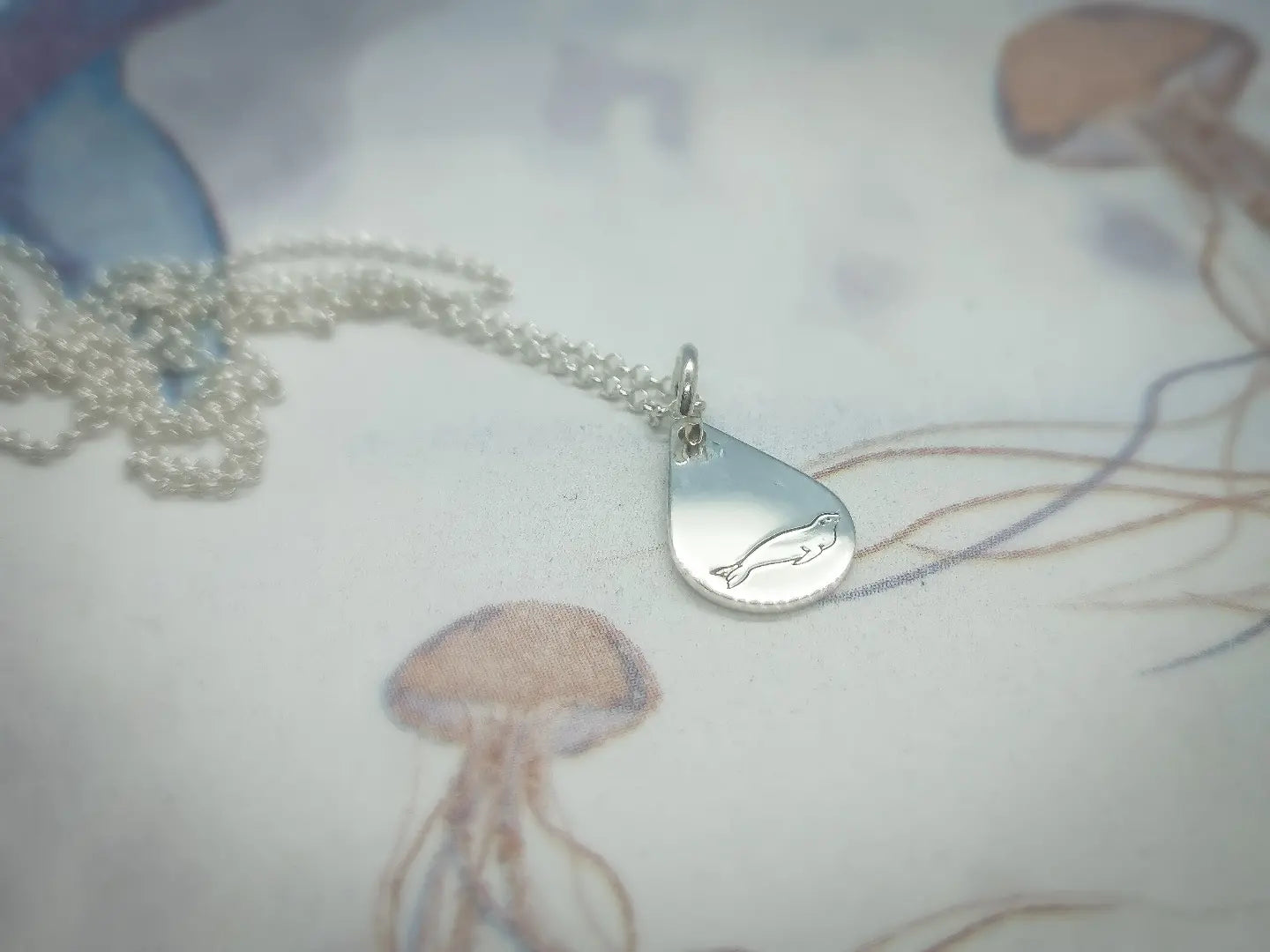 Β Handcrafted in sterling silver, this charming teardrop is stamped with a delightful seal design. A timeless combination of simplicity and style, this piece features a 10x14mm teardrop and an 18" silver chain.